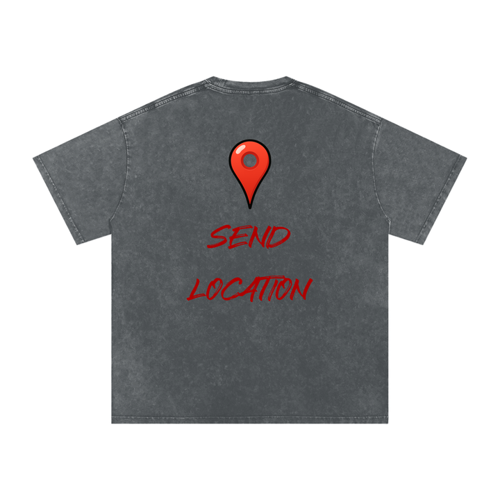 ''Send Location'' Snow-Washed Oversized Cotton T-Shirt